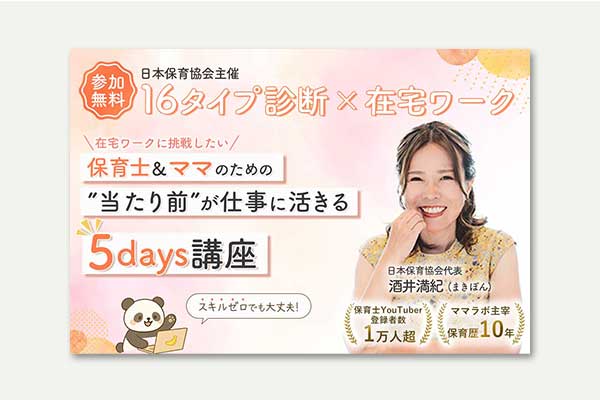 起業を目指す元保育士さんやママさんがターゲットの、講座募集バナーを制作させていただきました。ご依頼主さんの優しく明るい雰囲気と、保育士さんが好みそうなテイストでまとめました。このバナーから、約4倍の反応があったと嬉しいご報告をいただいております。